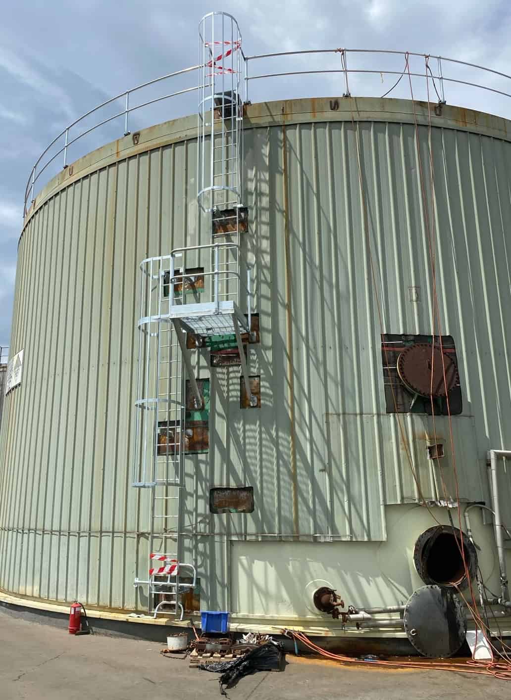 Tank Roof Refurbishment Cage Ladders Access Platforms Structural Steel Fabrication Welding Corrosion Protection Maintenance Access Solutions Handrail Systems Fall Protection Systems Working at Heights Compliance